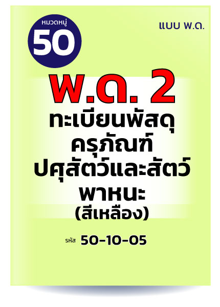 พด.2 ทะเบียนพัสดุครุภัณฑ์ ปศุสัตว์และสัตว์พาหนะ (สีเหลือง)