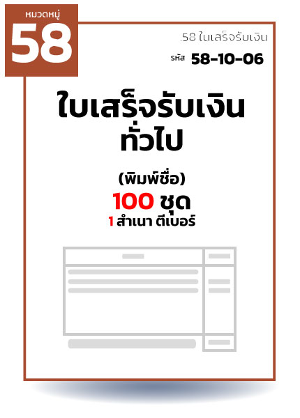 ใบเสร็จรับเงินทั่วไป (พิมพ์ชื่อ) 100 ชุด 1 สำเนา ตีเบอร์