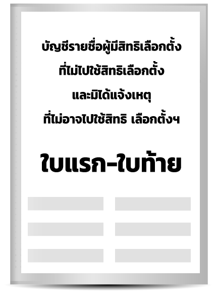 บัญชีรายชื่อผู้มีสิทธิเลือกตั้งที่ไม่ไปใช้สิทธิเลือกตั้งและมิได้แจ้งเหตุที่ไม่อาจไปใช้สิทธิเลือกตั้งฯ ใบแรก-ใบท้าย